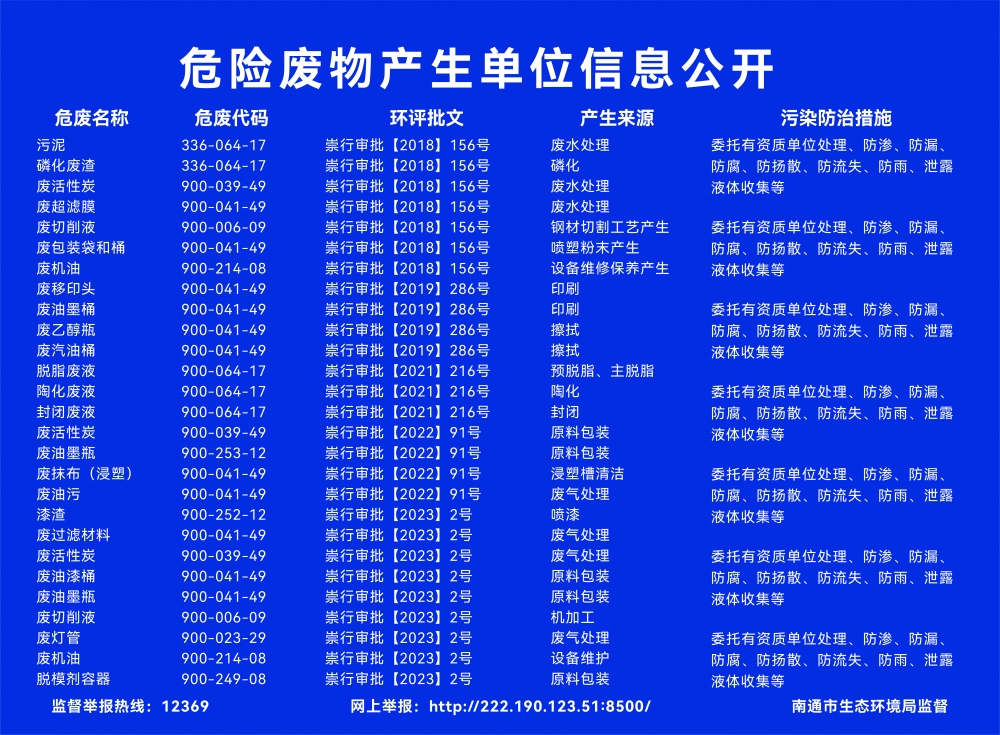 危險廢物污染環境防治信息公示